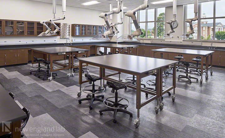 With the interest of health professions on the rise, High Point University is building a new facility to accommodate the surge in science majors that are enrolling. After the successful completion of the School of Health Sciences & Pharmacy, New England Lab was selected to provide custom-stained Maple veneer casework with chemical resistant phenolic resin work surfaces. Mobile adjustable height wood tables with unique-shaped tops filled the Physics teaching laboratories. Teaching fume hoods with glass sides sit along the perimeter of the chemistry and biology classrooms. Being a highly sterile environment, the anatomy spaces include stainless steel casework and downdraft anatomy dissection tables also supplied by NEL. Additional equipment such as local exhaust snorkels and biosafety cabinets complete the project.